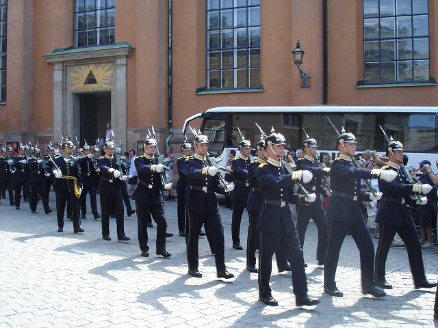 次は旧市街にある王宮へ。1523年から王宮として利用しているが、608室もある。国王一家は郊外に住み、国王はここに出勤する。ちょうど鼓笛隊がどこからともなく現れ、王宮の前で儀式をやっていた。 3時ころからドロットニングホルム宮殿へ。1991年に世界遺産。国王一家の住まいでもあるが、私達も庭や建物に入ることができる。開かれた王室なのだろう。北のベルサイユと言われるが、内部は大理石に似せて色づけされた石やだまし絵があり、さほど豪華とは思えなかった。ガイドの案内で、宮殿内の部屋を見て歩くのは、なぜか疲れる。ほとんどの人が飽き飽きした表情を見せているが、ガイドは手を抜くわけにはいかないので、一生懸命説明している。 庭はたしかにベルサイユ宮殿に似ているような気がする。宮殿の前庭だけでなく、奥まで広がっている庭園がきれいだった。 この国の王室には、ドイツやフランスの血も混じっている。ヨーロッパではこんなことは当たり前のことのようだ。そういえば、イギリスのエリザベス女王の夫もギリシャ人だ。
