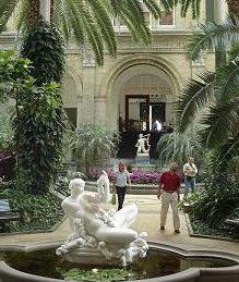 次はアマリエンボー宮殿へ。18世紀末に王宮が焼けてしまい、貴族の館4棟を宮殿に代用したので、いわゆる宮殿らしさがない。一般車も敷地内を通過できる。クマの毛皮の帽子をかぶった衛兵がいなければ、王宮だとは気づかない。王家が滞在中は旗があがる。65歳の女王はバルコニーに出て国民と至近距離で接し、直接会話を交わすこともあるらしい。 長男はハーバード大を出てシドニーオリンピックで知り合った一般人を妻にした。長男がいる。次男の奥さんは香港から迎えたが2年前に離婚、2人の息子がいる。警備にお金を使わないし、王家の人も普通に買い物もする。エイコさんは、雅子妃殿下の立場を思ってか、王室が開かれている様子を一生懸命話してくれた。 ガイドは3時までという約束だという。そのせいか、せかせかした見学だったが、エイコさんは早口でいろいろ話してくれた。 3時40分にはホテルにチェックイン。ここは街の中心部にあり、どこに行くのも便利。添乗員の菊地さんが、新カールスベア美術館と国立博物館に案内してくれた。ざっと見学する時間しかなかったが、どちらも無料。カールスベア美術館は、ビール会社が作った美術館で自然光を採り入れた明るい作りで、エジプト・ギリシャ・ローマの彫刻が充実している。 国立博物館は名前のようにデンマークを代表する博物館。日本の部屋もあった。有名な美術品はないが、鎧兜、刀、工芸品、仏像、おひな様、茶道具など、古い時代の日本を彷彿させる物が展示してあった。どうやって手にいれたのだろうか。日本の国立博物館は、無料で入館できる年齢を65歳から70歳に引き上げた。デンマークと日本のこの差は、なんなのだろう。 コペンハーゲン郊外にある城を見に行った。まずフレデリックスボー城へ向かった。「これぞ西洋の城」と言いたくなる赤煉瓦つくり城。湖面に浮かぶ姿がきれいだ。クリスチャン4世の父フレデリックスが、地方貴族の館を入手したのでこの名がある。クリスチャン4世が長い歳月をかけてルネッサンス様式の城にしたが、1859年に全焼してしまった。カールスベアビール会社の創立者ヤコブセンが寄付をして再建し、博物館として開館。デンマークにおけるカールスベア社の影響力の大きさがわかる。ここに書いているだけでも、人魚姫の像・美術館・フレデリックスボーに関係している。
