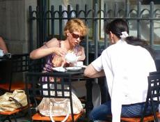 街角では妙な宗教団体が踊りながら布教していた。ビラをもらったが、仏教・ヒンズー・イスラム・キリスト教ごちゃまぜらしい。日本でいえば銀座4丁目で、どんちゃん騒ぎをやっても、お咎めもない。自由になったのだなと他国ながら嬉しくなった。オープンカフェがあり、似顔絵描きがたくさんいる。西洋の街角とそっくりだ。 |