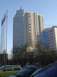 ウルムチは、どの海岸線からも2300q以上離れている。世界広しと言えど、こんなに海から離れている都市はないという。一般的には、大都市は海沿いにある。ところが、もっとも内陸にあるというウルムチは、予想に反し大都市だ。近代的な高層ビル(右)がそびえ、車の往来も賑やかだ。勝手に思い描いていた西域のオアシスの雰囲気はない。