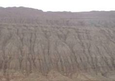 火焔山は東西100b、南北10qにもわたる山地だから、ここも火焔山の一部と言えるが、炎のような山肌ではない。でも赤い岩肌(左)は、燃えさかる火を連想させなくもなかった。(2006年3月2日 記)