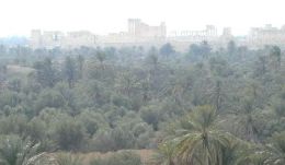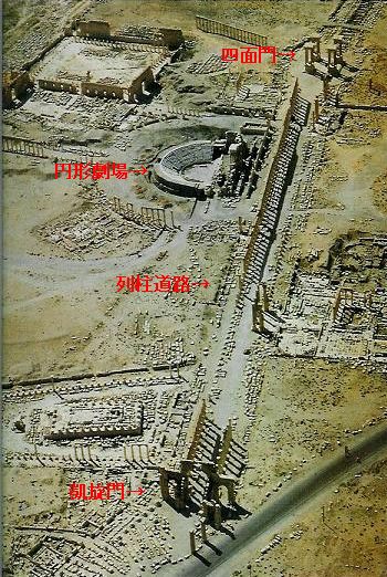 | ヨルダン・シリア・レバノンの旅 12 2005年1月17日(月)-7日目- マルーラ村を出てしばらく走ると、イラクの標識(右)があった。ここで写真ストップ。パルミラまで87キロ、イラクまで152キロ。今回の旅では、最もイラクに接近した地だ。周囲は真っ暗だが、全員がバスから降りた。標識撮影のためにバスを停めるのは滑稽だが、イラクに入国出来ないからこその心遣いだ。 同行者のSさんはポラロイドを持参しているので、このときも、手渡していた。2人とも写真が現れるまで、振る動作をしている。ポラロイドを知っているのだ。 7時頃パルミラのホテル到着。遺跡を模した柱が並ぶロビー(右)を見て、明日の観光に期待が高まる。<パルミラのシャームパレスホテル泊> 1月18日(火)-8日目- 今日は、パルミラ遺跡を見学することになっている。中東の3Pとして紹介される遺跡は、ヨルダンのペトラ、シリアのパルミラ、イランのペルセポリス。パルミラ遺跡は、シリア観光のハイライトであるが、昨日の曇り空に続き、小雨が降ったり止んだりの傘が手放せない日になってしまった。 私は中東の3Pを全部見学したことになるが、イランのペルセポリスも雪交じりの日だった。ついてないというより、こんな季節に来るのが間違いなのだ。ペルセポリスも1月の見学だった。 東西貿易の中継点として栄えていた頃は30万人も住んでいたが、現在は7万人にすぎない。観光と農業(ナツメヤシ・オリーブ・イチジク・ザクロ)で生活している。 AD106年にローマの属州になったが、ある程度の自治も許されていた。260年ころ、首長オダナイトが独立国を創始。夫の没後に妻のゼノビアが、ローマ帝国に独立宣言をした。女王ゼノビア(268〜272年在位)は、クレオパトラと対比されるほど、誇り高い女傑として有名である。抵抗むなしく、ついに272年、皇帝アウレリアヌスの手で捕らえら、ローマで処刑された。ゼノビアが、ローマの属州になることを拒み続けた理由は、何だったのだろう。 遺跡の面積は12平方q。まだ25%しか発掘していないというが、それにしては広大だ。周囲に現代人の住居がないので、遺跡の広さが目立つのかもしれない。 エジプトのミイラは内蔵や脳を取り除いて丁寧に作るが、パルミラのミイラは、ミュルラという防腐剤で簡単に作ったらしい。 左上写真の左端、塔になっている墓・エラベル家の塔式墓を見学。AD103年に作られたエラベル家の墓は、高さ24bもある4階塔式の墓だ。各階に48体の遺体が収容され、入口は死者のレリーフ(右上)で飾られている。外観より内部が立派だ。 エラベル家はナボ神殿を寄付しているので、勢力のある貴族だったのだろう。墓は地下に作るのが、古今東西の常識だと思っていたが、マンション墓が、すでにここにあった。 次は、3兄弟の墓へ。AD146年に作られた3兄弟(マレ・ナミ・サーディーン)の墓。これは、地下墳墓である。後に商売に失敗したので、他の人にも分譲した。墓を分譲するという発想が、すでにあったことが面白い。 帰国後すぐの1月28日の日経新聞を友人が切り抜いて渡してくれた。「パルミラ遺跡の地下墓を調査している奈良・パルミラ遺跡発掘調査団は、象牙製のピンや青銅製の腕輪などを発見した」と載っていた。日本人が発掘にたずさわっていることは、この記事を読むまで知らなかった。奈良とパルミラは、シルクロードの起点と終点といってもいい。そのご縁なのか、奈良の調査団だ。以前にも墓からは染織など多数が出土し、当時の生活を知る上で、貴重な史料になっている。 バール神殿の道路を挟み向こう側に、凱旋門がある。遺跡全体は、空からの方が分かりやすいので、絵はがきを借用した(右)。 凱旋門に続く、列柱道路の長さに圧倒される。柱の直径は95p、高さ9.5bのコリント式。もとは375対が両側にあったが、今は150本が残っている。 ナバ神殿、円形劇場、四面門、アゴラ、キャラバン宿も残っている。 ゼノビアが捕らえられた後に、徹底的に破壊されたと言われるが、これだけの遺跡が残っている。「石の建造物はいいな」と、日本の木造建築とつい比べてしまう。 中東の3Pだから、何枚も写真を撮ったが、ヨルダン・シリアの旅だけでも、円形劇場は何枚も載せている。上空写真だけでご想像いただきたい。 (2005年10月2日 記) 感想・要望をどうぞ→ ヨルダン・シリア・レバノンの旅1へ 次(アレッポ)へ ホームへ |