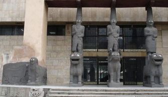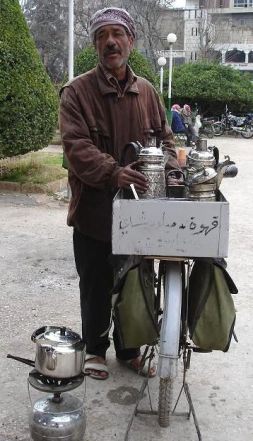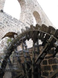| ヨルダン・シリア・レバノンの旅 13 2005年1月18日(火)-8日目- 夕方、パルミラ遺跡の山の上に聳えるアラブ城(右)へ。サラディーンによって作られた城だが、1625年にファルアルディーンがオスマントルコと戦った城として名高い。山上から夕日を見学することになっているが、朝から太陽は出ていない。サンセットの時だけ突如現れるなど奇跡に近いが、やはり雲に隠れたままだった。 夕食時に、添乗員が日本から持ってきた素麺を茹でてくれた。E旅行者社は、旅の中間点でこのようなサービスをする。男性の添乗員だが、上手に茹でてくれた。アラブ料理も美味しいが、素麺の味は格別だ。 この日は自由時間が多かったので、日本の友人に絵葉書を6枚書いた。旅行会社が、1人3枚の絵葉書と切手をくれる。シリアの中でもっとも辺鄙なホテルからの投函だけに、着くかどうか心配したが、6人からの報告では、到着は2月12日前後。3週間もかかっている。どこで滞ったものやら、追跡調査をしたいぐらいだ。 <パルミラのシャームパレスホテル 泊> 1月19日(水)-9日目- パルミラは砂漠のど真ん中にあるので、ホテル出発後しばらくは、土砂漠、岩砂漠の中を走った。羊の放牧をしている所でバスを停めてくれた。羊の群れと羊飼いは、それだけで絵になるので、バスストップは嬉しい。ところが、バスと人の気配で、番犬がキャンキャン吠える。羊は群れをなして遠くに去ってしまった。望遠で写した上の写真の羊は、尻を向けたままだ。 政府軍がが勝ちをおさめた後は、落ち着きを取り戻したが、20年が過ぎた今も、ビルは崩れ落ちそうで(左上)、薄汚い。 水車に興味がない私は、周辺に集まっている人々眺めていた。総じて貧しそうで、一度も洗濯していないような衣類を着ている。靴磨きの少年もいれば、チャイ(紅茶)売りの男(右上)もいる。水曜日の午前中だというのに、年寄りでもない男性が、たくさんぶらついていた。 ハマから次の目的地・アレッポまでは肥沃な地帯で、小麦・ピスタチオ・綿花・オリーブが栽培されている。 シリア第2の都市・アレッポは、トルコに近い北部にある。人口は350万人。テキスタイル、オリーブ石けん、ピスタチオが主産業。トルコから逃れてきたアルメリア人が15万人も住んでいるとか。国境に近いことを思わせた。 昼食後にアレッポの国立博物館を見学。正面入口(左)には、テルハラ出土のハダトとイシュタールの神、ライオンや牛の像がある。マンガチックでユーモアの顔をしている。ネアンデルタール人の子どもの骨、アガサクリスティの夫の発掘品、マリ王朝出土の粘土板、パンを焼いた型、アッシリア・ウガリットの出土品など見応えがあった。メソポタミア文明発祥の地にいることを実感した。 ダマスカスの博物館と同じく、ここも内部は撮影禁止。撮影を許して、HPで広く紹介してもらった方が、宣伝になると思うのだが。 男女高校生7人(右)が見学していた。日本人が珍しいのか、一緒に写真を撮りたがって、私達のまわりを離れない。髪形や服装から察するに、ちょっと不良っぽいが、日本の高校生に比べ無邪気だ。英語が通じないので、ニダールさんに、どこに住んでいるか聞いてもらった。近郊の町から来ているという。 ウマイヤ朝時代のグレートモスクには、洗礼者ヨハネの父の墓がある。ダマスカスのモスクには洗礼者ヨハネの首塚があった。ヨハネ父子は、シリアでは尊敬されているのだろう。 モスクに入る前に、身体を浄めている人々を見かけた。長い時間をかえて入念に洗っている。このところ、イスラム過激派の爆弾テロが報道されるあまり、イスラム教全体が悪く言われがちだが、イスラム地区を旅すると、こうした熱心な教徒の姿に心を打たれる。(2005年10月16日 記) 感想・要望をどうぞ→ ヨルダン・シリア・レバノンの旅 1へ 次(シリアからレバノンへ)へ ホームへ