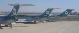タラップを降りると、イラクの民間機が3機停まっていた(左)。戦争が始まったために、帰れなくなった飛行機だという。イラクで戦闘状態が続いていることを実感したのは、15日間で、これが最初で最後だった。