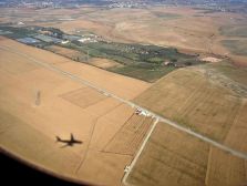 機内から見たアンマン上空は、予想通り茶色の世界(右)。