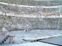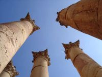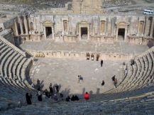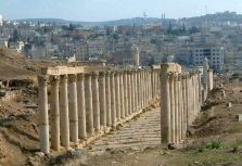 | ヨルダン・シリア・レバノンの旅 8 2005年1月16日(日)-6日目 アンマンは、BC1200年頃にアモン人の王国として栄えた。その後、ギリシャ、ローマ、ビザ アンマンは1925年から、トランスヨルダンの首都になった。アンマン城趾は、市内を眺望するには格好だ。160万人の都会だけあり整然としているが(右上)、壁も屋根もベージュ色で、埃っぽい感じがする。色を統一しているためだというが、緑が少ないので、色彩感が乏しい。 アンマン城趾には見るべき遺跡が少ない。ローマ時代のヘラクレス神殿などがわずかに残るだけだ。遺跡の少ない国なら、これでも目玉になるが、遺跡ばかりの国にとっては、修復する必要もないのだろう。左は、朽ちかけたコリント式列柱。 日本とヨルダンの国交回復50年記念のヨルダン展が、世田谷美術館で2004年の11月7日まで開かれていた(左)。 目玉展示品は、この博物館所蔵のアインカザル出土の双頭の土人形だったが、2ヶ月後に、同じものに出会うことになった(右上)。世田谷博物館では撮影禁止だったが、ここは撮ってもいい。 アインカザルは、アンマン近郊にある新石器時代の都市遺跡。BC7300年〜ら6500年頃の遺跡だから、世界最古の人形(ひとがた)だという。人形は何体もあるのかと思ったが、双頭の人形は、どうやら一体だけだ。 他に見逃せないのは、1947年に発見された死海文書。羊皮紙や青銅板に旧約聖書の文献が残っている。見ただけでは何が何やらわからないが、非常に貴重な文献だという。 次に向かったのは、ローマ劇場(右)。BC2世紀のギリシャ時代に作られ、ローマのハドリアヌス帝の時代に改修された。600人収容できる。旧ローマ帝国内には、劇場が幾つ残っているのだろう。私でさえ、すでに数え切れないほど見ている。 市内見学を終え、北へ向けて走る。車窓からパレスチナ人の難民キャンプ・バッカキャンプを見た。難民キャンプはヨルダンだけで15あるが、最大のバッカキャンプには、17万人が住むという。こういう所こそ訪れてみたいが、もちろん見学地には入っていない。 ヨルダンは1948年と1967年に難民を受け入れたが、邪魔者扱いをしているのは明らかだ。劣悪な環境で暮らしているのだろう。大国の身勝手さで、長年住んでいた地を追い出されたパレスチナ人の苦悩は計り知れない。アラファト議長の死後、穏健派のアッバス議長が選ばれたが、イスラエルとの和平は来るのだろうか。 アンマンから北50キロにジェラシュ遺跡がある。東洋のポンペイと言われ、ヨルダンではペトラに次ぐ観光地。20%を発掘したにすぎないが、アラブに作ったローマ都市ではいちばん華麗で壮大だという。最盛期の人口は25,000人。きれいな遺跡なので、何枚も写真に収めたが、3枚だけ、ごらんいただきたい。左は、おなじみ円形劇場。中はアルテミス神殿の柱、右は列柱道路。 他にハドリアヌス凱旋門、ヒポロドーム(戦車競技場)、フォーラム(楕円形の柱で囲まれた広場)、ゼウス神殿、模擬海戦を行った劇場、カルマドキシモス通り(馬車がはまらないように、石畳が斜め)など、快適に過ごす都市機能が備わっている。 ヨルダン・シリア・レバノンの旅1へ 次(シリア入国)へ ホームへ |