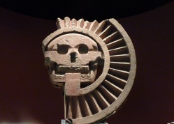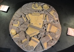 この博物館最大の目玉は「太陽の石」(左)。直径3.6mの円盤の中央は太陽神、その周りに複雑な文様が彫ってある。私にはチンプンカンプンだが、見る人が見ると、カレンダーになっている。この石の前で記念写真を撮る人が多いので、円盤そのものを撮るのが大変だった。