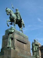 | ポーランド・チェコの旅 13 2003年8月16日(土) プラハからピルゼン(チェコではプルゼニだが、ここでは馴染みがあるピルゼンを使う)までは、ノンストップの高速バスで1時間20分。わずか80コルナ(約300円)と、信じられない安さだ。特に公共機関の運賃が安い。土産品は決して安くないので、観光客は、ぼられているのだろう。 車内はほぼ満席だが、東洋人は私たち2人だけ。ボヘミアというと、明治時代にチェコの貴族に嫁いだクーデンホーフ光子さんを思い出す。彼女の領地はどの辺りだろうと眺めるが、車窓からは分かるはずもない。帰国後に調べたところ、クーデンホーフ家の領地は、ピルゼンより更に西だった。8時半に出発し、10時前にピルゼンのバスターミナルに到着。 トイレには行けるときに行っておかねば・・とバスターミナルのトイレを使うことにした。チップは5コルナ、バス代に比べ高い。我慢できないこともないので、なおさらその感が強い。入り口にzenyとmuziとある。人型の図もないので、どちらが女性かわからない。muziに入ったら指で反対方向を示された。地方に行く場合は、女性と男性の単語は覚えていったほうが良さそうだ。 外壁には「ユダヤの星」マークがあり、屋根はタマネギ型。はやる心でドアに進んだが、無情にも閉まっていた。通りがかりの夫婦が張り紙を読んでくれたのだが、土曜は休みだという。 そのご夫婦が、もうひとつシナゴーグがあるから案内してやると言ってくれた。日本のことを話題にしながら、別のシナゴーグまで歩いた。結果的には、そこも閉まっていたのだが、ピルゼンというと、この親切を思い出す。 土曜のせいか、ほとんどの店は閉まっているし、繁華街と思われる通りも、閑散としている。淋しいぐらいだ。 ピルゼンでビールの醸造が始まったのは13世紀。博物館には、ビールの歴史と醸造過程が展示してある。受付で日本語のパンフレットを貸してくれた。読みながら見学しろということらしいが、60コルナも払っているのだから、パンフレットをくれてもいいじゃないかと思う。 次は、聖バルトロミエイ教会へ。教会見学は無料の場合が多いが、ここは20コルナ。疲れ直しに、椅子に座って静かに周囲の彫像を眺めた。特に、懺悔の部屋が印象に残った。格子戸突きの小さな窓越し(右)に、神父様に懺悔するのだ。テレビで見るだけだが、刑務所の面会所と似ていると思った。 シナゴーグ、緑のベルト地帯、ビール博物館、プラザ川、広場など、歩き回った場所を上から眺めるのは悪くない(左)。 思いがけないことに、塔の入り口にいたお兄さんが日本語のパンフレットをくれた。教会の案内ではなく、ピルゼン全体の観光パンフだ。今日は誰にも会わなかったが、日本人も訪れるということだ。 駅を降りると、聖バーツラフの騎馬像(左)が威風堂々と立っている。日本人には馴染みがないが、ボヘミアの最初の王である。 ここから大通りが続いている。旧市街と違い、真っ直ぐに延びた広い通りだ。ボヘミアグラスなど土産物屋・ホテルが林立しているさまは以前来た時と変わりはないが、気のせいかアメリカ資本の店が増えたようだ。 1969年の「プラハの春」、1989年の「ビロード革命」の時に、チェコの人達が集まった通りとしても知られている。 パイプオルガン演奏の独唱とパイプオルガンの独演が交互になっているので、パイプオルガン奏者は休みなしで聴かせてくれた。今日の席は、すべて400コルナ(1500円ぐらい)。 昨日のカトリック教会とは内部のたたずまいが違う。十字架のイエス像もなければ派手な祭壇もなく、実に質素だ(左)。新教の教会にちがいないと思ったが、念のために確かめた。「ええ、プロテスタントです。フス派です」の答えが返ってきた。フス派の信者は1%しかいないが、中心街にどっこい生きていた。8月17日(日) 弁当のBOXをもらい5時にホテルを出発。7時45分プラハ発。長い帰国の旅の始まりだ。9時ロンドン着。1時間の時差があるので、2時間15分のフライト。ヒースロー空港での待ち時間が4時間40分。空港外には出してくれないので、ぼけっとして過ごした。 8月18日(月) 予定通り朝9時に成田に着いた。機内から出ると寒いぐらいだ。ポーランド・チェコでは降られなかったが、日本では雨が多かったらしい。高校野球の日程もだいぶ延びていた。(2005年4月2日 記) 感想・要望をどうぞ→ ポーランド・チェコの旅1へ 次の海外の旅(ヨルダンなど)へ ホームへ