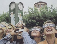 広場に集まった人たちは、気軽にサングラスを貸してくれたり、フィルムを指して「目に悪いよ」と言ってくれる人も。東西の男女が一緒になり、空の一点を見上げたのでした。