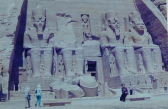 | エジプトの旅 8 空港は茶褐色の中にポツンとあり、神殿までの道中も、まったく音のない世界。1本の草木もなければ行き交う車もなく、土産物屋もなく、人の住んでいる気配もなく、動物すらいるのかどうか。神殿に着くと、満々と青い水を貯えたナセル湖が目に入り、色彩のありがたさをこの時ほど感じたことはありません。 上の写真は、1975年に父が撮影した大神殿。移転後間もないこの時期に、エジプトを旅する人は、まだ少なかったと聞いています。私も何枚も撮りましたが、親孝行の意味もあり、父のアルバムから借用。右下に座っているのが、27年前の母。今88歳です。 巨大な4体の像は、すべてラムセス2世。足の間の小さな像は、王妃、王子、王女。ファミリー勢揃いで見方によっては、家族団らんです。神殿の内部にまで、何体もの彼の像があり、壁にも大げさな戦勝報告や賞賛の言葉。ラムセス2世オンパレードです。 右の写真を見ると、足下にある小さな像がおわかりですね。背の高い男性が8年前に亡くなった父。「黙ってワシの写真を世界に発信するなんて。勝手な真似をするな!」と怒っているかな? 小神殿は王妃ネフェルタリのために建てた神殿。100人もの子供がいた事で知られるラムセス2世ですが、ネフェルタリは神殿を造るほどの特別な存在だったようです。 「1年に2度、神殿の奥深くある4体の像のうち3体を、朝の太陽が順次照らしていく。1体は闇の神なので太陽があたらない」というびっくり仰天するような話を、大神殿の内部で聞きました。 右の写真奥の光っている所(この時は、太陽光ではなく電気のあかり)に、4体の像が立っています。入り口から10数bも入った奥ですよ。 たった5分間のショーですが、ヌビア人(エジプト奥地に住む人種)が民族衣装で前の晩から踊り明かし、当日の朝は大勢の見物人が押し寄せるそうです。1軒しかないホテルは何年も前から予約で一杯、泊まれない人は、テントを張る場合も。 1年に2度の日は、2月22日と10月22日。移転前は、2月21日と10月21日でしたが、移転したことで狂ってしまったとか。2月21日はラムセスの誕生日、10月21日は、彼が即位した日。ウッソーと言いたくなりますが、この日だけに奥まで朝日が射し込むことは確か。天文学、地理学、数学の正確さを物語るものです。設計図どおりに施工した技術の高さにも驚くばかりです。 神殿を約64b上に移築したことで、ずれが生じたわけです。世界の英知を集めての移転作業にもかかわらず、3300年前の智恵にかなわなかったと言うなら、こんなに愉快な話はありませんね。エジプトの旅は、まだ続きます。 (2002年12月2日 記) 感想・要望をどうぞ→ エジプトの旅1へ 次へ ホームへ |