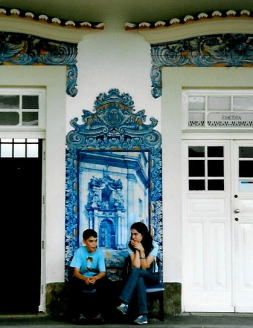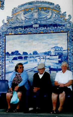 ポルトガルの旅 7 アズレージョという青いタイルは、ポルトガルの風景に、なんら違和感なく溶け込んでいます。宮殿、貴族の館、教会など権威ある建物ばかりか、ホテル、広場、駅、レストラン、街角の壁に至るまで、場所を選ばす、どこでも目にすることが出来ました。アズレージョを見ない日は、1日とてなかったのです。右写真は、ポルトのサン・ベント駅構内。朝食前の散歩時に訪れました。電光掲示板のタイムテーブルがなければ、宮殿とも見間違う重厚で豪華な造りですね。ガイドブックによれば、2万枚ものタイルを使っているとか。ポルトガルの歴史を、時代順に描いているそうです。残念ながらタイル絵の内容は、猫に小判。 アズレージョは、アラビア語で「小さな磨かれた石・モザイク」を意味するアズレーシャと、「青」を意味するアズールが語源。イベリア半島は、長いことイスラムに支配されていたので、その影響が色濃く残っているようです。 私が、これまで見たイスラム寺院(エジプト、イラン、トルコ、チュニジア)のどれもが、幾何学模様のタイルで埋め尽くされていました。特に、イランの寺院は、屋根までタイル貼り。言い尽くせないほど見事でしたが、ほんの少しの例外をのぞいて、すべて幾何学模様でした。イスラム教が偶像崇拝を認めていないので、おのずと、具象的な模様は御法度。 ところが、ポルトガルでアズレージョが盛んに使われるようになった17世紀は、すでにレコンキスタ、つまりキリスト教の国に回復していました。イスラムの教えを守る必要がなかったので、具体的な絵ばかりです。聖書、勝利した戦い、王の業績などこの種の絵にありがちな定番以外に、塩づくりの様子や、農夫が働くほのぼの田園風景などさまざま。 一つ一つのタイルは、ご覧のように小さいものですが、貼り合わせると大きな絵になります。左写真は、ブサコ(ポルトガルその1の地図参照)の宮殿ホテルのロビーを飾っていた1枚。1810年の「ブサコの戦い」を描いたもの。ポルトガルの領有をめぐるイギリスとフランスの戦いです。刀を振り上げているのは、イギリスのウエリントン。ウエリントンは、1815年に、ワーテルローでナポレオンを破ったことで有名ですが、ここでもご活躍。 ポルトから少し南下した海岸よりに、アヴェイロ(ポルトガルその1の地図参照)という町があります。町の中央を流れる運河は、「ポルトガルのベニス」とも言われ、モリセイロというゴンドラに似た小舟も浮かんでいましたが、比べられるベニスは可哀想 この町でもっとも印象的だったのは、駅構内のアズレージョです。見事さと言う点では、ポルトのサン・ベント駅にかないませんが、田舎駅独特の情緒とアズレージョの美しさが一体となり、思い出深い駅になりました。 ご存知のように、ヨーロッパの駅には、改札口がありません。自由にプラットフォームに入り、しかも線路に下りて、反対側のプラットフォームから撮ったのが、下の2枚の写真。列車をのんびり待っているところです。 バカチョンカメラで望遠を使ったので、少しぼけていますが、私は気に入っています。どこの国でも、オバチャンとオジチャンは同じような雰囲気。そして若い人は、同じ列車を待つ間も、どことなくスタイリッシュ。 ポルトガルのお年寄りの多くは太っていますよ。特に女性。若者はスマートですが、小学生ぐらいまでの子供は、日本なら肥満児と言われそうな子供がうようよ。現地ガイドによれば、「子供は甘やかされているから、好きなモノを食べている」。年頃になって食習慣を変えるのは、大変でしょうに。 ところで、アズレージョはAZULEJOと書きますが、同じ綴りで、スペインでは、アズレホと読むそうです。スペインでは、この種のタイルは目にしなかったし、アズレホなる説明は聞きませんでしたが、本による情報。 この話が出たついでに、同じ綴りの読み方の違いに驚いた話を、付け加えましょう。スペインのトレドを流れている川は、タホ川。同じ川がポルトガルに流れ込んで、テージョ川。日本でも同じ川が、県が変わると名前が変わる例はたくさんあり、長野県の千曲川が、新潟県では信濃川になるなどは一例です。 でもタホもテージョも綴りはTAJOであって、完全に呼び名が変わったわけではないのです。英語読みに慣れた私たちは、テージョと読むことに違和感を覚えませんが、タホに親しみを感じる国もたくさんあるはず。同じイベリア半島の国でありながら、片やテージョ、片やタホ。日本の呼び名も、スペインではJapon、ハポン。ポルトガルではJapao、ジャポーン。サッカーのジーコ監督がいつもポルトガル語で会見しているので、お馴染みですね。 人種的にも似たもの同士。一見では区別がつかないぐらいだから、同じ言語を使って欲しいものだと思ってしまいますが、両国の競争意識は以前から強く、大航海時代など、日本を舞台にしてさえ、争っていたほど。日本と韓国の関係を思えば