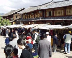 | 雲南省の旅 5 昆明から北西600qの麗江は、ナシ族が多く住む街。中国の城下町は壁で囲むのが普通ですが、ここには城壁がありません。築城時の領主の姓は木。壁で囲むと「困る」になり、縁起が悪いので、壁を作らなかったとか。 僻地にあるために、文革の被害にも遭わず、南宋時代の古い街が残りました。1997年に世界遺産に。 昆明も1890bにある高原都市ですが、昆明から飛行機で1時間強にある麗江は、海抜2400bに位置する山岳都市。2400bというと新潟の妙高とほぼ同じ。更にロープウエイを乗り継いだ地は、万年雪をいだく玉龍雪山を見るに絶好の場所ですが、空気が薄いとみえ、ガイドに「走らないで、急がないで」と何度も注意されました。高山病に気をつけて!というわけ。私は頭痛もせず、眠気も覚えず、高山病とは無縁でしたが。 同じ雲南省でも、近代的ビルが建つ昆明とは、くらべようもないほどの田舎。日常的に背負い籠を使っているらしく、ほとんどの女性は籠を背にしています。これではお洒落のしようもありません。籠の中はカラの場合もあり、果物や野菜であふれかえっている場合も。一見しただけでは、買い物に来ているのか、売りに来ているのかわかりません。 ![]() ![]() ![]() 上の3枚は、いずれも古城内で撮ったもの。黒い瓦屋根の木造二階建てが並ぶしっとりとしたたたずまいは、日本の妻籠や馬籠にも似た雰囲気ですが、規模では比較になりません。網目のように張り巡らされている細い石畳、縦横に流れている水路、緑したたる柳も、この街を清潔で魅力的なものにしています。 左の写真は、中心地の四方街ですが、屋台の土産物屋が軒を連ね、観光客であふれかえっています。どんなに迷っても、この広場にはたどり着けるのだとか。中の写真は、ナシ族の民族衣裳のお年寄りが、揚げパンを売っているところ。熱々のパンの味は?「ウーンおいしい!」。 感想・要望をどうぞ→ 雲南省の旅 1へ 次へ ホームへ |